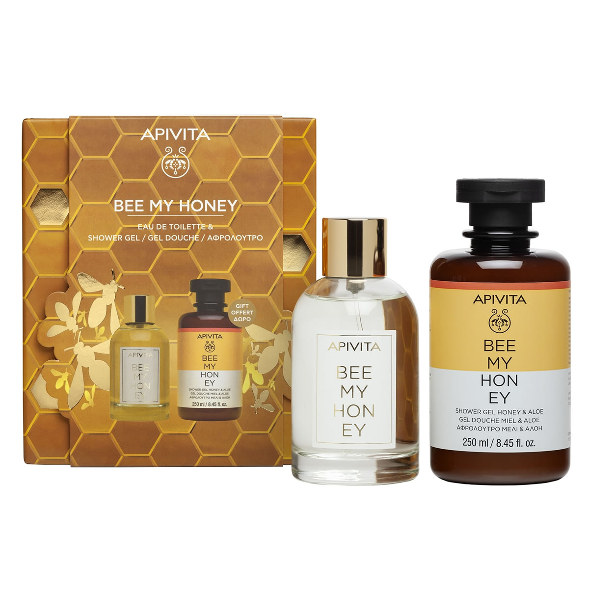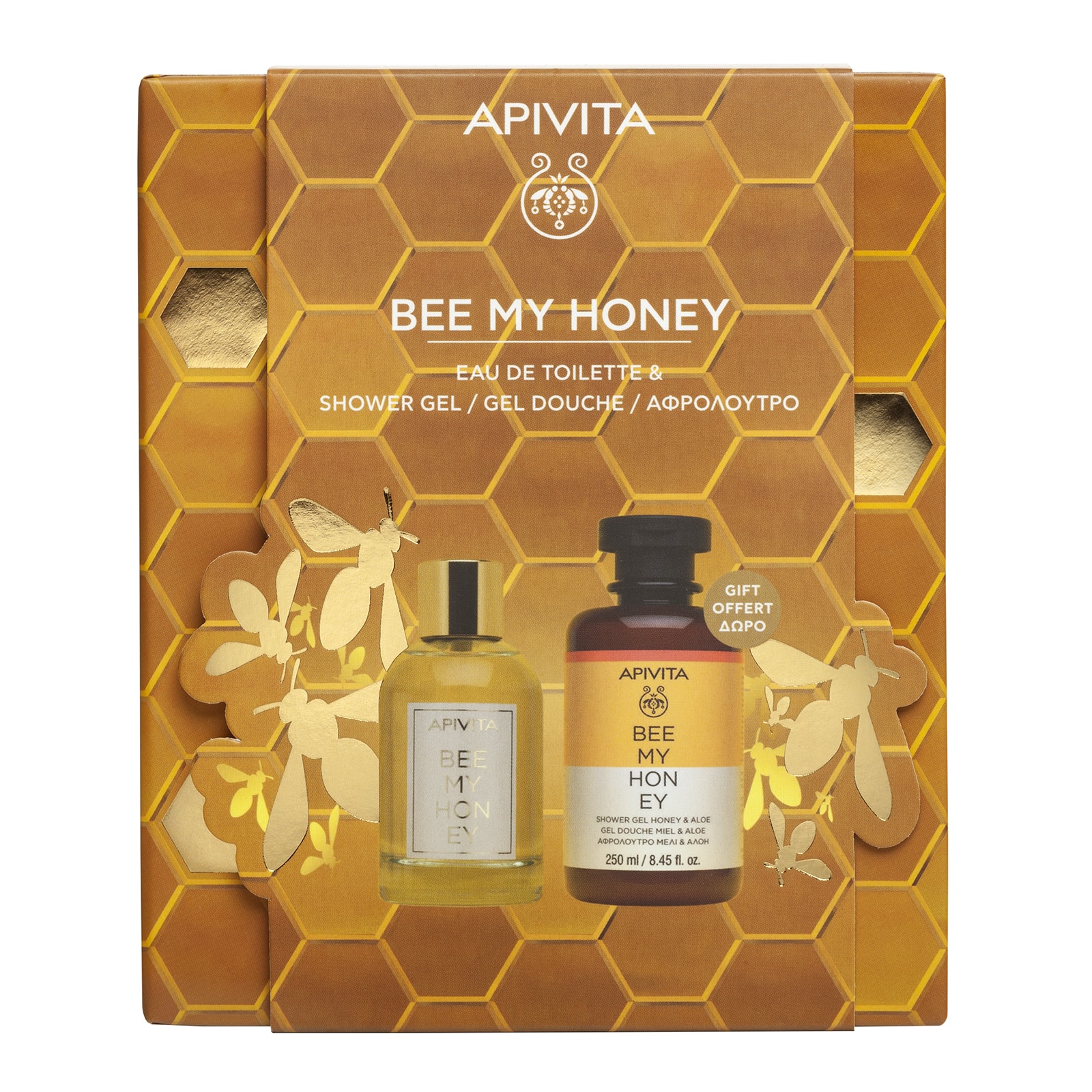 • BEE MY HONEY Eau de Toilette (100ml): Μια βόλτα στις ομορφιές της Μεσογείου… Ένα φρέσκο και αναζωογονητικό άρωμα, με νότες εσπεριδοειδών, που αιχμαλωτίζει τις γλυκές νότες του φρέσκου μελιού και τη ζωντάνια της φύσης.