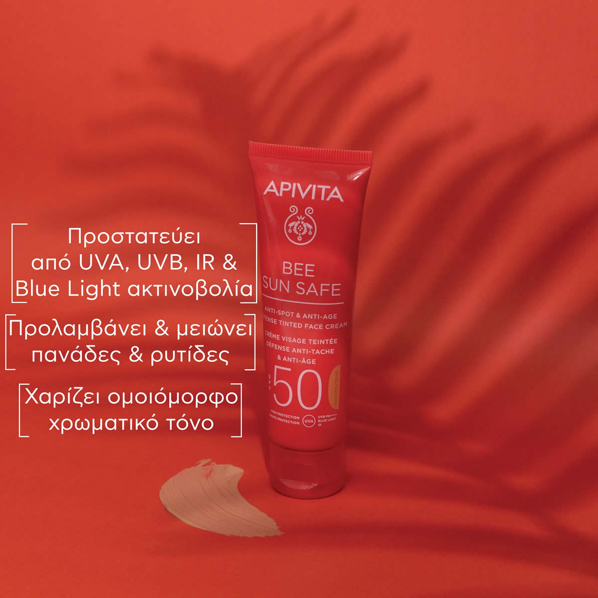 APIVITA Bee Sun Safe Αντηλιακή Κρέμα Προσώπου Κατά των Πανάδων και των Ρυτίδων με Χρώμα-Golden Απόχρωση 50ml