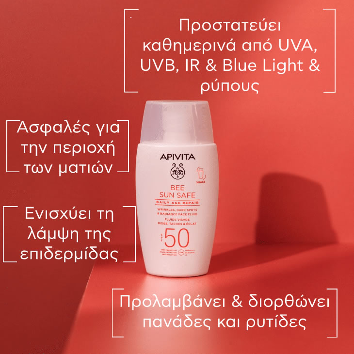APIVITA Bee Sun Safe Λεπτόρρευστη Κρέμα Προσώπου-Dry Touch SPF50 Κατά των Πανάδων & των Ρυτίδων 50ml