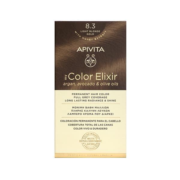 APIVITA My Color Elixir Νο 8.3 Βαφή Μαλλιών Ξανθό Ανοιχτό Χρυσό με Έλαια Άργκαν, Αβοκάντο & Ελιάς