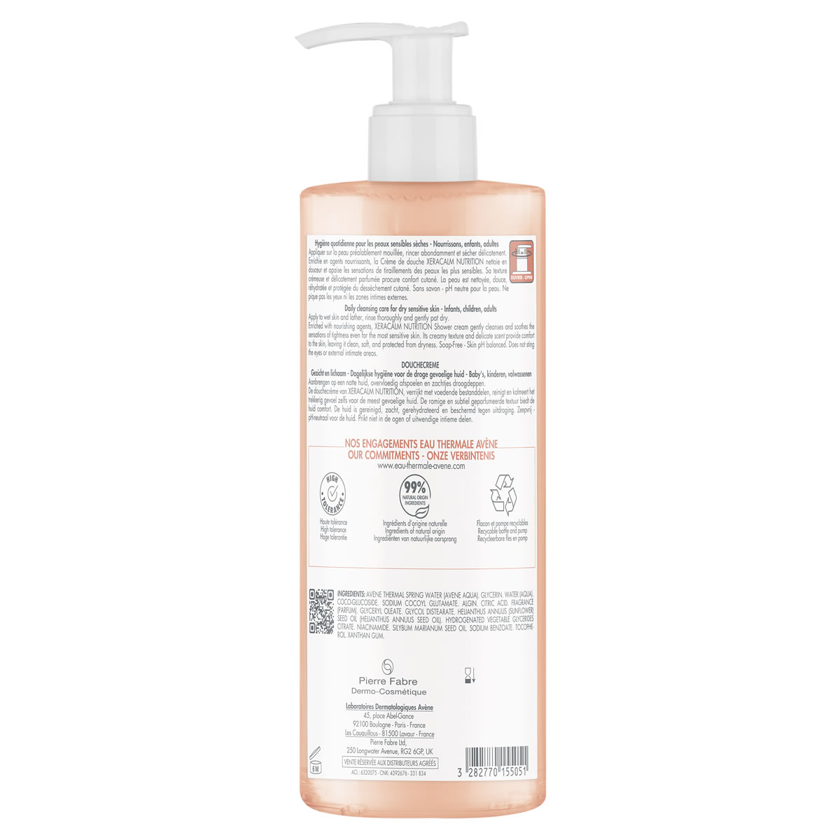 Αυτό το κρεμοντούς, με 99% συστατικά φυσικής προέλευσης, είναι εμπλουτισμένο με ενυδατικούς και θρεπτικούς παράγοντες. Η κρεμώδης υφή του χωρίς σαπούνι, με ουδέτερο pH για το δέρμα και λεπτό άρωμα, προσφέρει άνεση στο δέρμα και ευχάριστη εμπειρία χρήσης. Αφρίζει κατά την εφαρμογή και δεν προκαλεί τσούξιμο στα μάτια ή στις εξωτερικές ευαίσθητες περιοχές του σώματος. Επωφελείται από μια οικολογικά υπεύθυνη προσέγγιση. Η συσκευασία των 500ml περιέχει 73% ανακυκλωμένα υλικά. Το φιαλίδιο είναι κατασκευασμένο από 100% ανακυκλωμένο πλαστικό*.