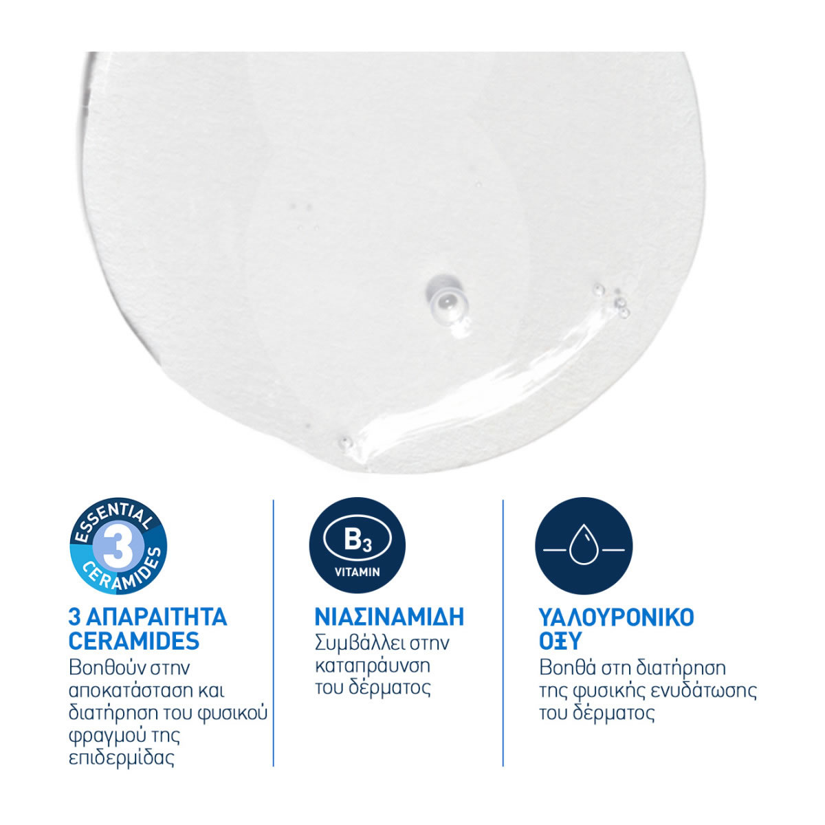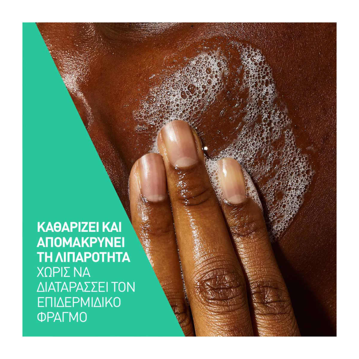 Το CeraVe Foaming Cleanser, που αναπτύχθηκε σε συνεργασία με δερματολόγους, καθαρίζει σε βάθος, χωρίς να διαταράσσει τον επιδερμιδικό φραγμό. Αυτό το αναζωογονητικό gel, με 3 απαραίτητα ceramides και υαλουρονικό οξύ, απομακρύνει αποτελεσματικά ρύπους, μακιγιάζ και την περίσσεια λιπαρότητας. • Με ceramides 1,3 και 6-ΙΙ • Υαλουρονικό οξύ, που βοηθά στη διατήρηση της υγρασίας της επιδερμίδας • Νιασιναμίδη που βοηθά στην καταπράυνση της επιδερμίδας • Χωρίς άρωμα, κατάλληλο για ευαίσθητο δέρμα ΒΑΣΙΚΑ ΟΦΕΛΗ • 3 Απαραίτητα Ceramides Όλα τα προϊόντα CeraVe περιέχουν τα 3 απαραίτητα Ceramides για τη σωστή λειτουργία και αποκατάσταση του επιδερμιδικού φραγμού • Ceramides (1,3 και 6-ΙΙ) • Νιασιναμίδη Βοηθά στην καταπράυνση της επιδερμίδας • Δράση αφρισμού Αναζωογονεί απαλά και καθαρίζει • Μη φαγεσορωγόνο Δε φράσσει τους πόρους.