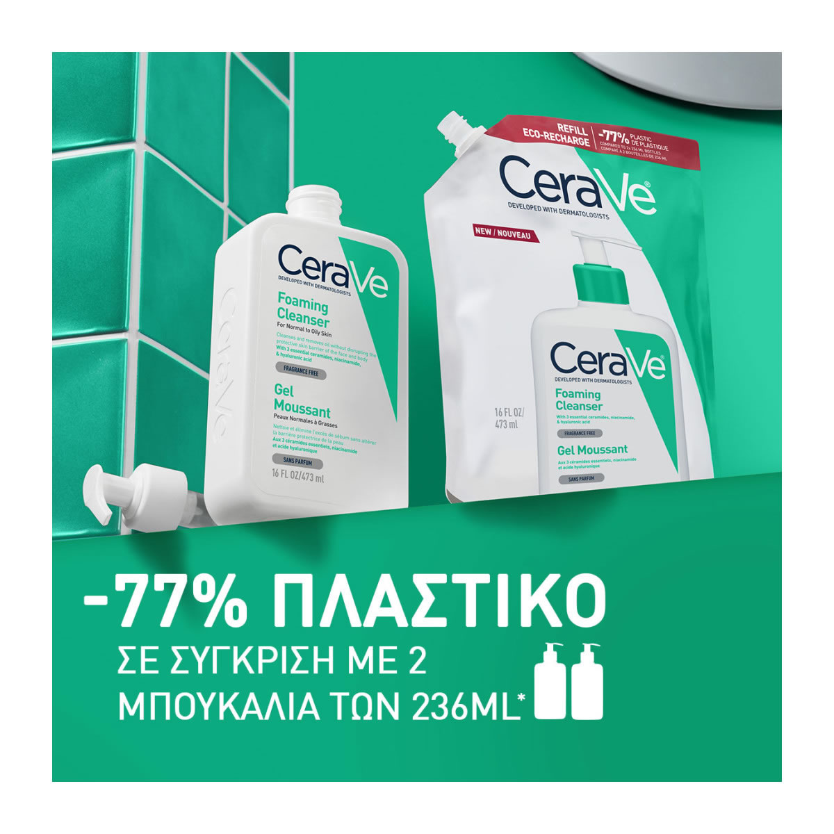 CeraVe Foaming Cleanser Refill Αφρίζον Gel Καθαρισμού για λιπαρή επιδερμίδα, κατάλληλο για Πρόσωπο και Σώμα 473ml