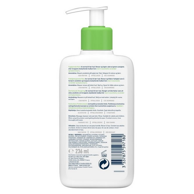 Το CeraVe Hydrating Cleanser, καθαρίζει και ενυδατώνει πρόσωπο και σώμα χωρίς να διαταράσσει τον επιδερμιδικό φραγμό. Με 3 απαραίτητα ceramides & υαλουρονικό οξύ. Για κανονικό έως ξηρό δέρμα.