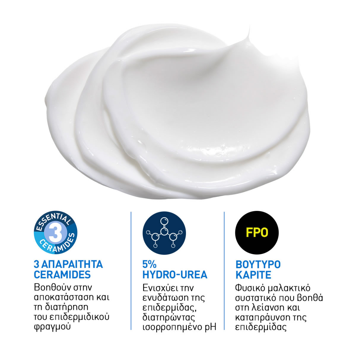 Η CeraVe Intensive Moisturizing Cream περιέχει 5% Hydro-Urea TM (ένα μείγμα φυσικών ενυδατικών παραγόντων), τρία δερματολογικά πανομοιότυπα κεραμίδια, τεχνολογία MVE και βούτυρο καριτέ. Είναι επίσης υποαλλεργική, χωρίς άρωμα, με ισορροπημένο pH και κατάλληλη για όλους τους τύπους και τόνους δέρματος, συμπεριλαμβανομένου του ευαίσθητου δέρματος.