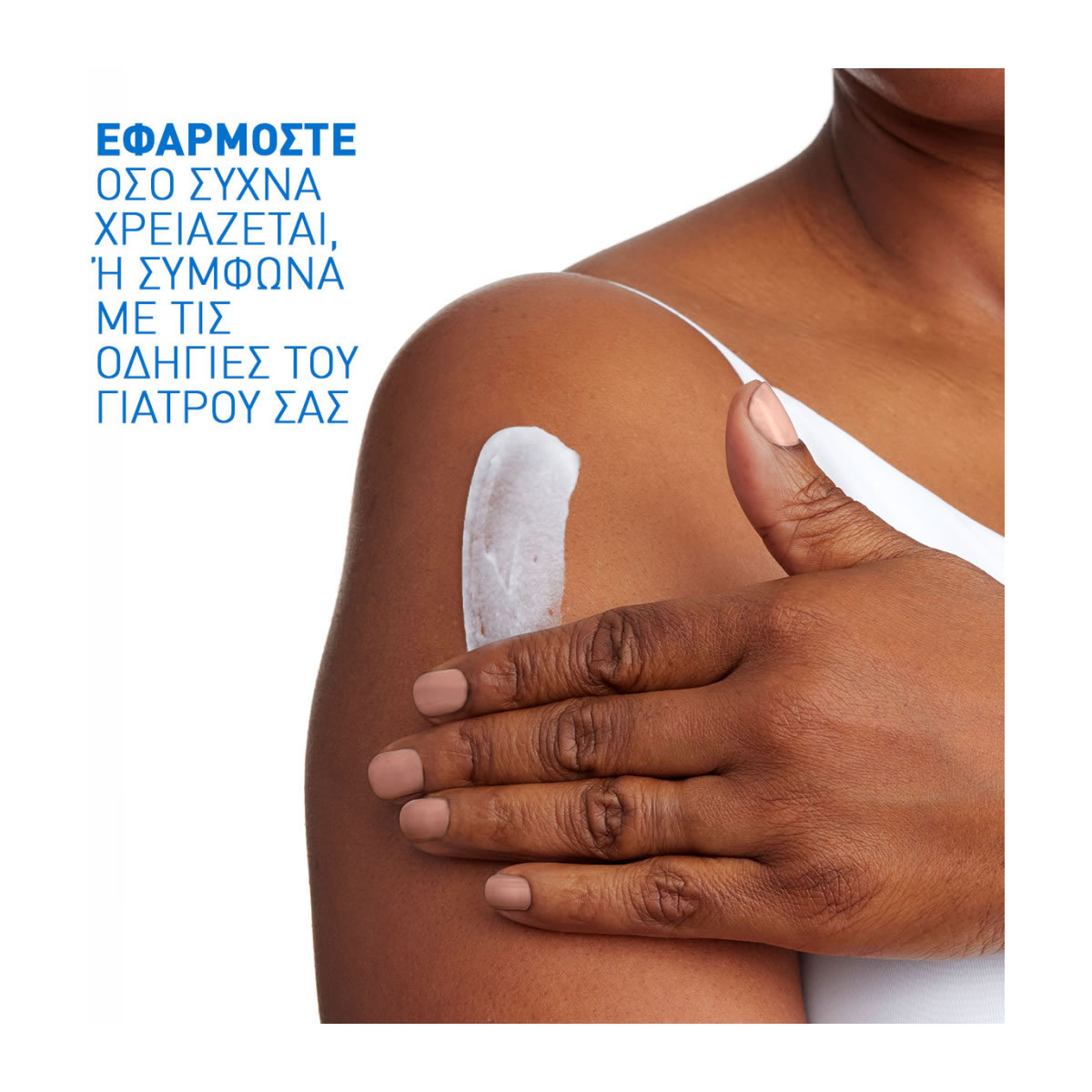 Χρήση: Εφαρμόστε όσο συχνά χρειάζεται ή σύμφωνα με τις οδηγίες του γιατρού σας. Κατάλληλη για πρόσωπο και σώμα. Αποφύγετε την επαφή με τα μάτια. Σε περίπτωση επαφής, ξεπλύνετε άμεσα με άφθονο νερό.
