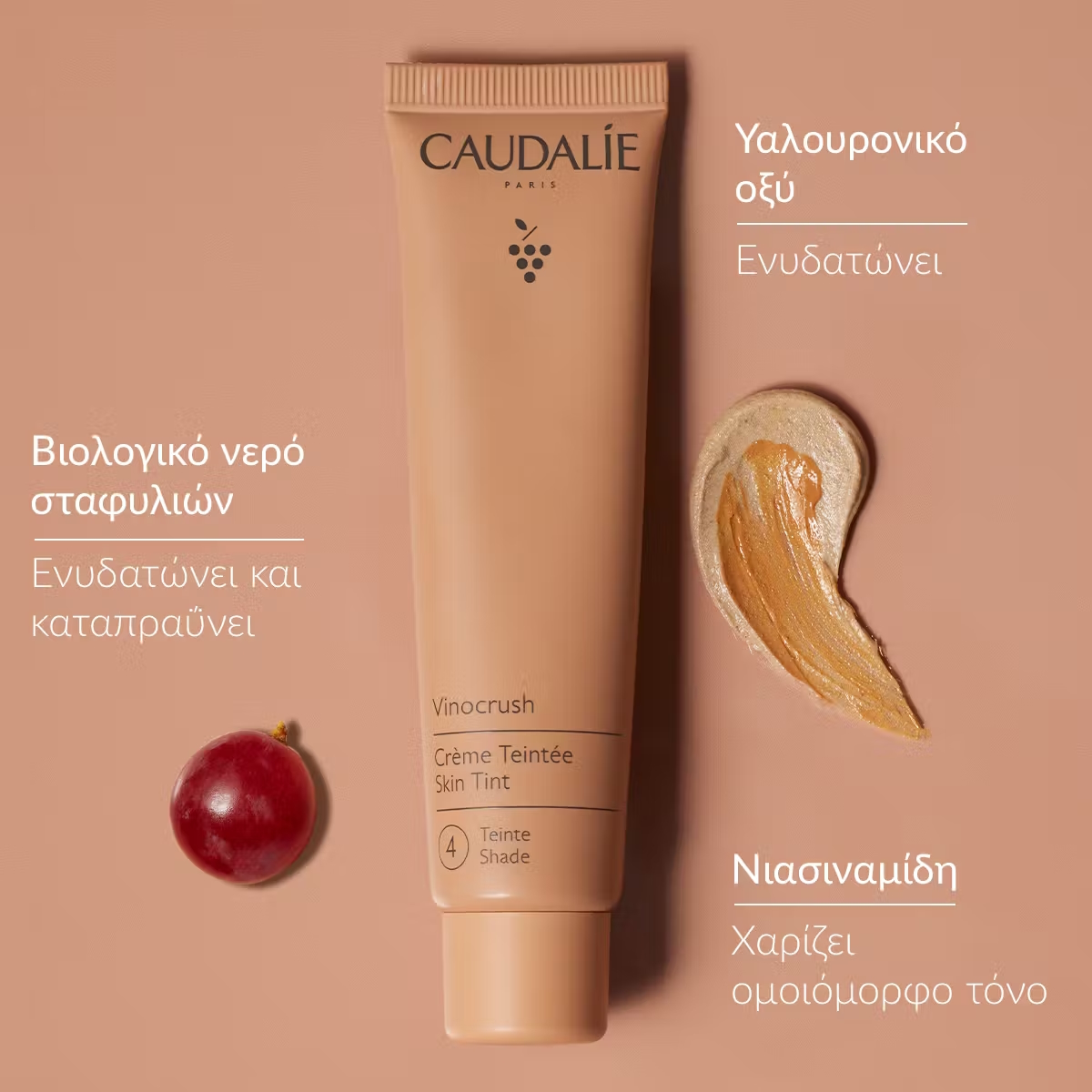 Η Skin Tint Vinocrush διορθώνει την επιδερμίδα και της χαρίζει ομοιόμορφο τόνο ενώ παράλληλα αναδεικνύει τη φυσική της ομορφιά.