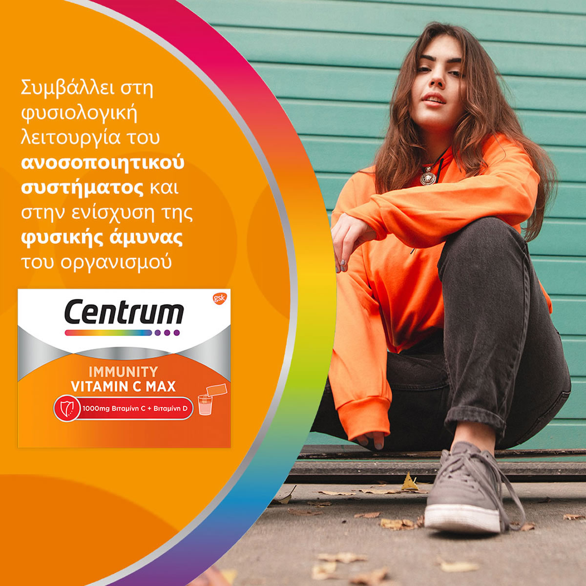 CENTRUM Immunity Vitamin C Max για Ενίσχυση του Ανοσοποιητικού και Ενέργεια 14 Φακελάκια Αναβράζουσας Σκόνης