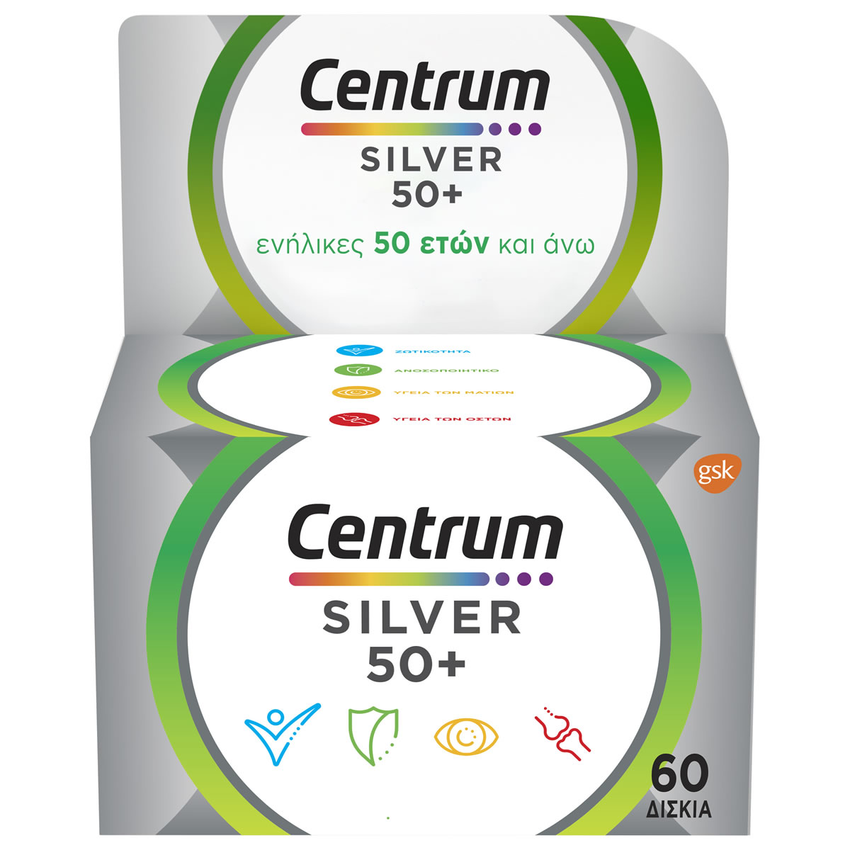 Το Centrum Silver 50+ είναι ένα συμπλήρωμα διατροφής με προσαρμοσμένα επίπεδα βιταμινών, μετάλλων και ιχνοστοιχείων, ώστε να ανταποκρίνεται στις διατροφικές ανάγκες των ενηλίκων 50 ετών και άνω.