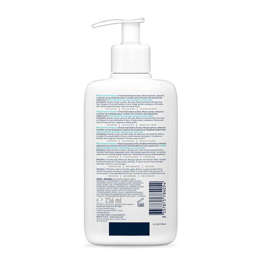 Το Blemish Control Cleanser της CeraVe είναι ένα gel καθαρισμού κατά των ατελειών με σαλικυλικό οξύ, έναν αποτελεσματικό απολεπιστικό παράγοντα που βοηθά στην απομάκρυνση των νεκρών κυττάρων και του σμήγματος, μειώνει τα μαύρα στίγματα και ελαχιστοποιεί την όψη των πόρων. Ο εξυγιαντικός άργιλος, που περιέχει, συμβάλλει στη βελτίωση της όψης των πόρων. Με Τεχνολογία Απορρόφησης Λιπαρότητας, σε μια αναζωογονητική υφή που μεταμορφώνεται από gel σε αφρό, καθαρίζει την επιδερμίδα και αποσυμφορεί τους πόρους συμβάλλοντας στην πρόληψη νέων ατελειών, ενώ ταυτόχρονα διαφυλάσσει τον προστατευτικό επιδερμιδικό φραγμό χάρη στα 3 απαραίτητα ceramides.
