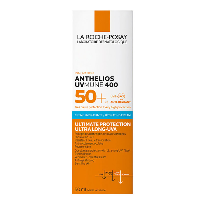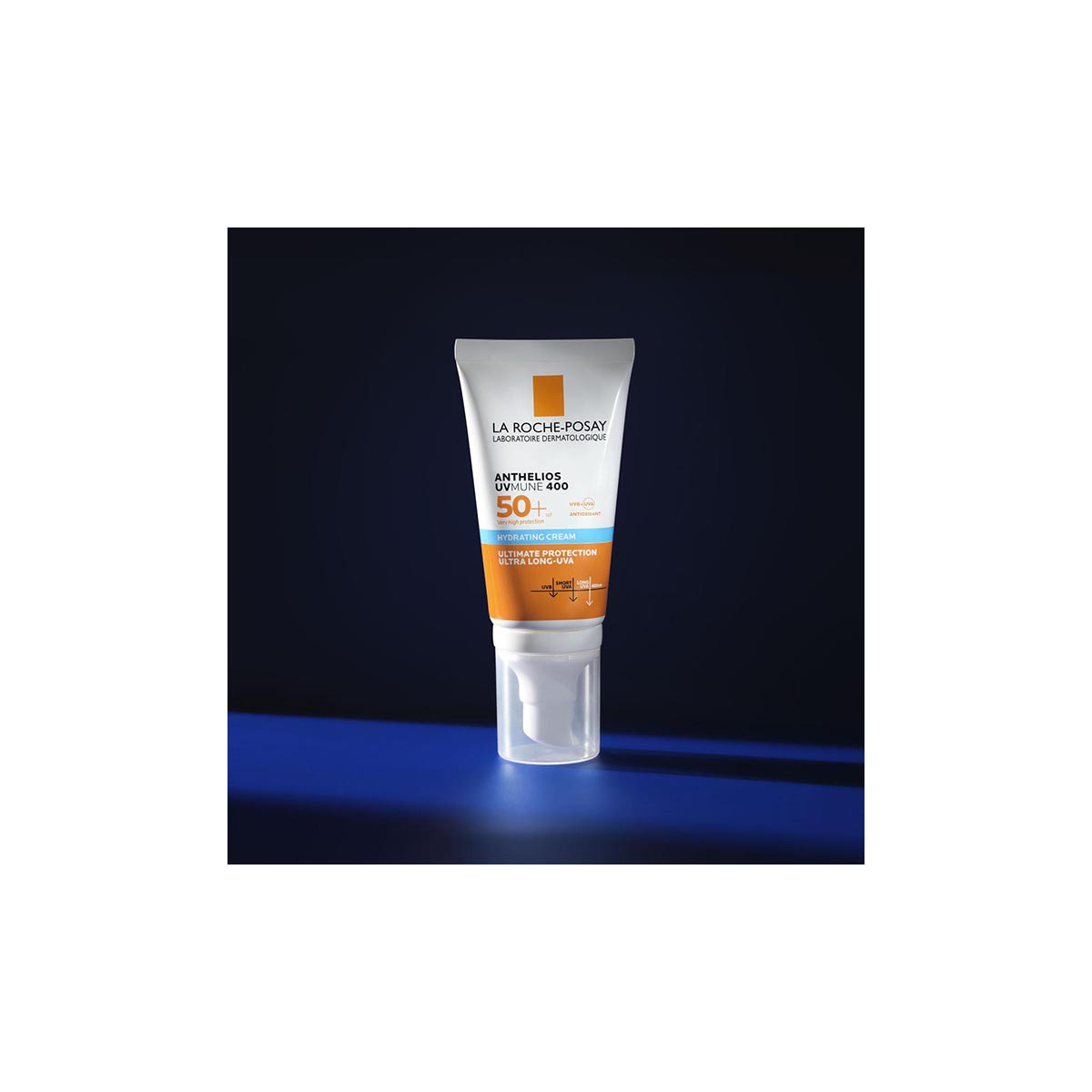 La Roche-Posay Anthelios UVmune 400 HYDRATING CREAM SPF50+: Απόλυτη προστασία (UVB + UVA + ULTRA ΜΑΚΡΕΣ UVA) κατά της βαθιάς κυτταρικής βλάβης.