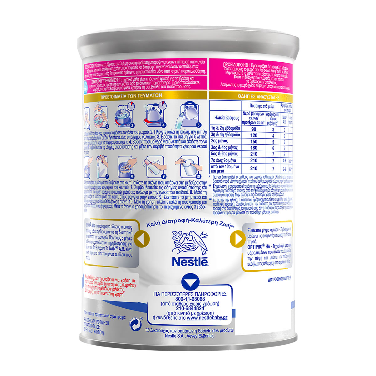 Το ΝΑΝ® A.R. είναι διατητικό τρόφιμο για ειδικούς ιατρικούς σκοπούς, ειδικά σχεδιασμένο για τη διατροφική αντιμετώπιση των αναγωγών. Πριν τους 6 μήνες είναι κατάλληλο ως μοναδική πηγή διατροφής για βρέφη που δεν θηλάζουν. Το νέο NAN A.R. είναι πηκτό χάρη στο άμυλο, ενώ περιέχει ενεργείς καλλιέργειες βακτηριδίων L.Reuteri. Ταυτόχρονα περιέχει μερικώς υδρολυμένη πρωτεΐνη, που το καθιστά κατάλληλο για βρέφη που βρίσκονται σε υποαλλεργική δίαιτα και διευκολύνει την πέψη. Χάρη στο PROTECT START προσφέρει στο μωρό σας όλα τα απαραίτητα θρεπτικά συστατικά για σωστή φυσική και πνευματική ανάπτυξη.