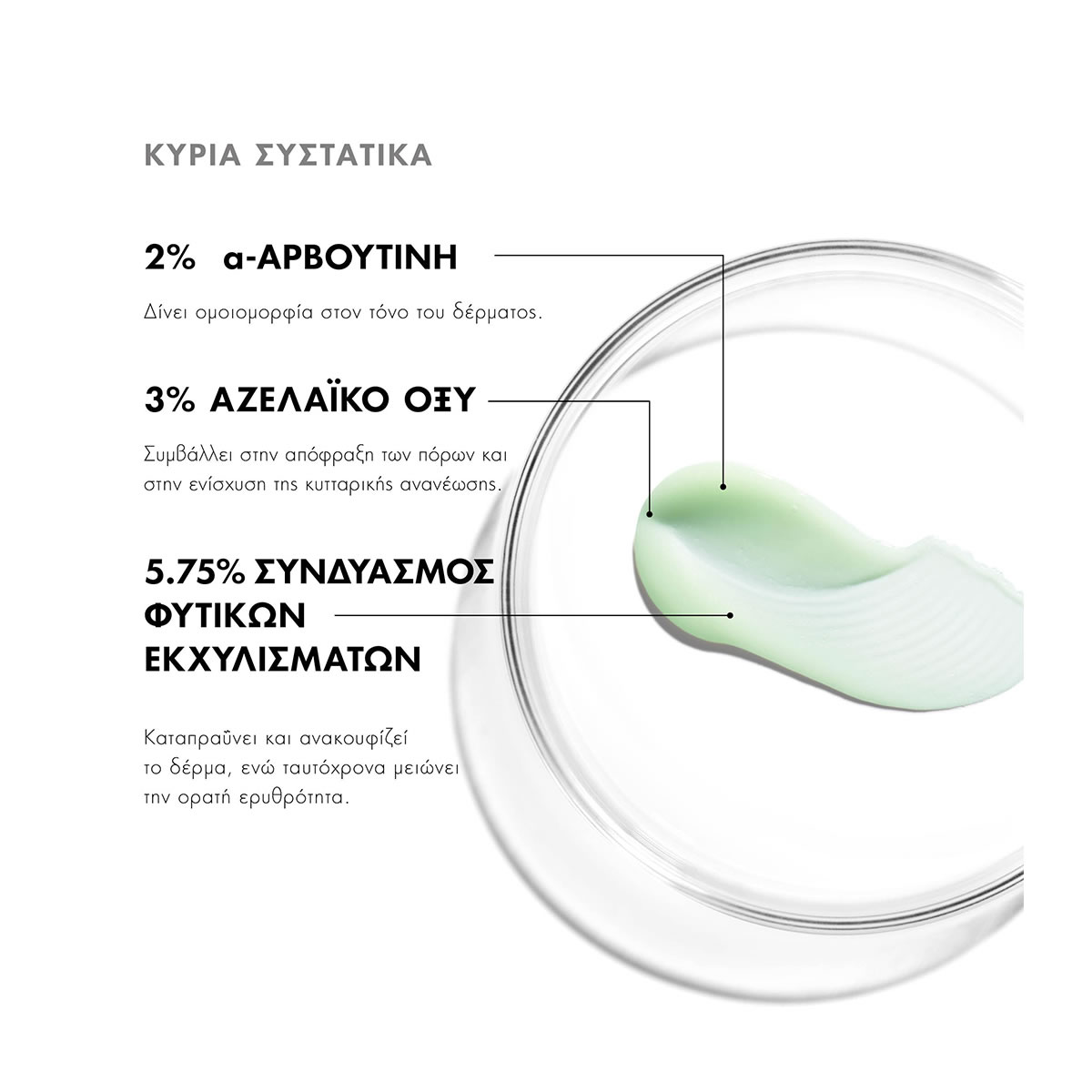 Καθημερινή φροντίδα ενυδάτωσης με 3% αζελαϊκό οξύ, 2% αρβουτίνη και 5.75% βοτανικό μείγμα που βελτιώνει τις ατέλειες και τη φωτεινότητα του δέρματος. Μειώνει ορατά τη περίσσεια λιπαρότητα και την ερυθρότητα, ενώ παράλληλα βελτιώνει την υφή και τον τόνο του δέρματος και ελαχιστοποιεί την όψη των πόρων ενισχύοντας τη λάμψη του.