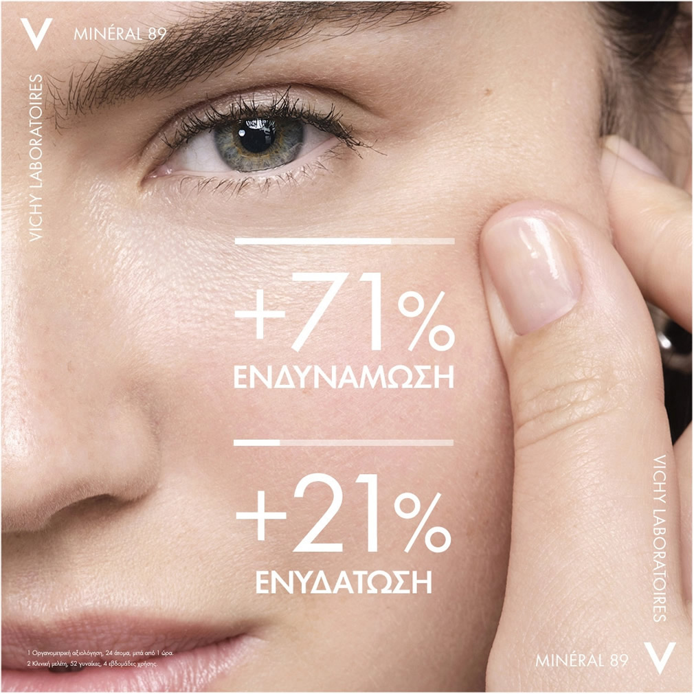 Το Mineral 89 ενισχύει τη λειτουργία του επιδερμιδικού φραγμού για να κάνει καθημερινά την επιδερμίδα πιο δυνατή απέναντι στις εξωτερικές επιθέσεις, όπως ρύπανση, άγχος και κούραση.