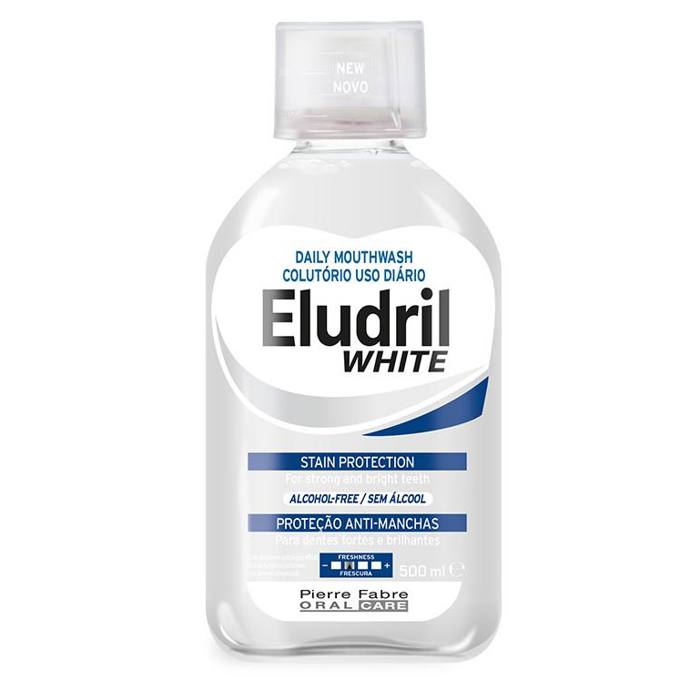 Το Eludril White είναι ένα καθημερινό στοματικό διάλυμα για δυνατά και λαμπερά δόντια. Μειώνει την προσκόλληση χρωστικών παραγόντων στην επιφάνεια των δοντιών, μειώνει τη δημιουργία οδοντικής πλάκας, χωρίς να περιέχεται αλκοόλ. Το δροσερό άρωμα μέντας προσφέρει μια ευχάριστη αίσθηση φρεσκάδας.