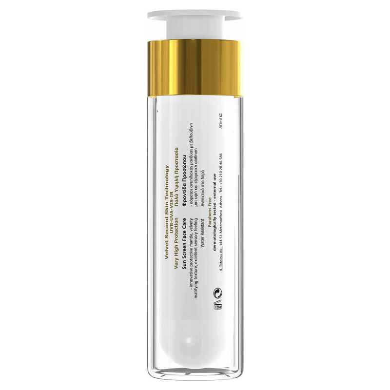 Μια πρωτοποριακή διάφανη αντηλιακή προστασία προσώπου με μοναδική καλλυντική συμπεριφορά και άριστη εφαρμογή μΆ ένα άγγιγμα. Χάρη στην επαναστατική καινοτομία Second Skin Technology η μοναδική σύνθεσή του αφήνει μια βελούδινη αίσθηση στην επιδερμίδα, προσφέρει ματ όψη για 6 ώρες απορροφώντας το σμήγμα και απαλύνει την όψη των ρυτίδων. Η διάφανη, μη λιπαρή υφή του δεν αφήνει λευκή χροιά και το καθιστά άριστη βάση για μακιγιάζ. Προλαμβάνει τα σημάδια της φωτογήρανσης και προστατεύει από δυσχρωμίες που δημιουργούνται από την έκθεση στον ήλιο.