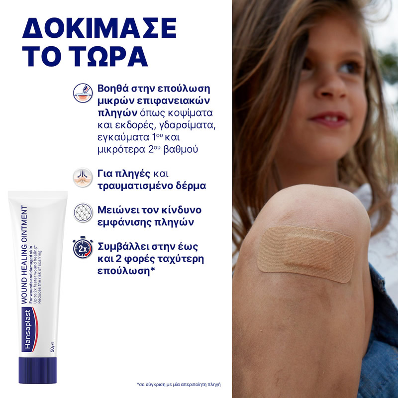 Συμβάλλει στην επούλωση μικρών επιφανειακών πληγών όπως κοψίματα και εκδορές, γδαρσίματα, πρώτου βαθμού και μικρότερα εγκαύματα δευτέρου βαθμού.