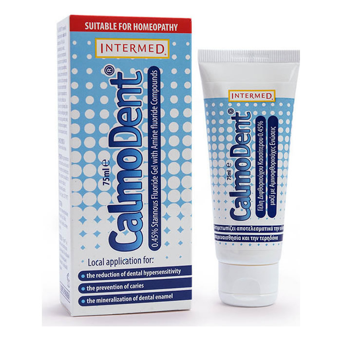Εντατική φροντίδα & ανακούφιση το Calmodent gel είναι φθοριούχος γέλη για την αποτελεσματική καταπολέμηση της οδοντικής υπερευαισθησίας & τερηδόνας, τη σφράγιση των οδοντικών σωληναρίων, τη συστηματική ενδυνάμωση της αδαμαντίνης των δοντιών και την πρόληψη του τερηδονισμού αυτών.