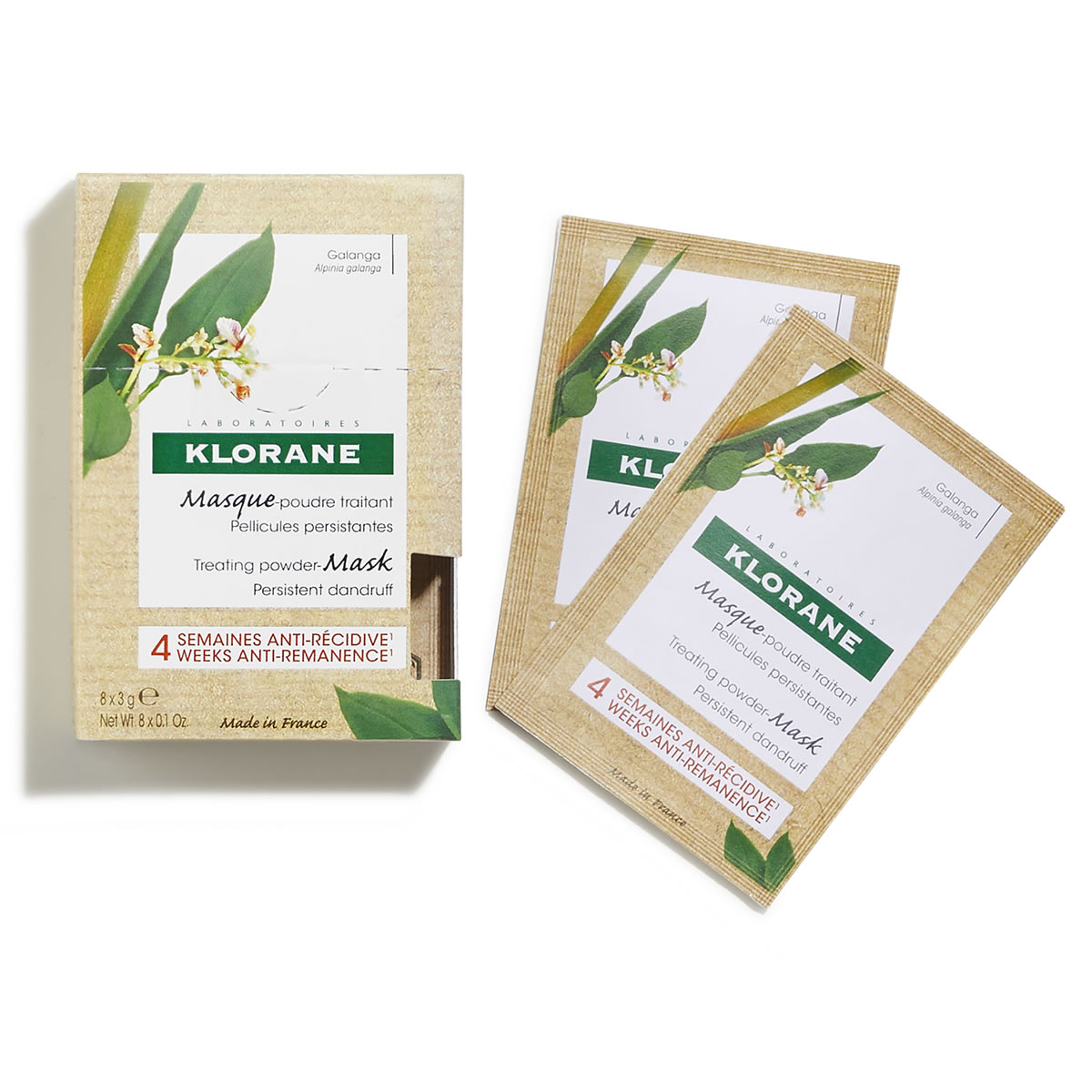 Η θεραπεία με μάσκα σε μορφή πούδρας με Γκάλανγκα της Klorane συμβάλλει στην αποτελεσματική εξάλειψη κάθε τύπου πιτυρίδας, ακόμη και της πιο επίμονης, από την πρώτη εφαρμογή.