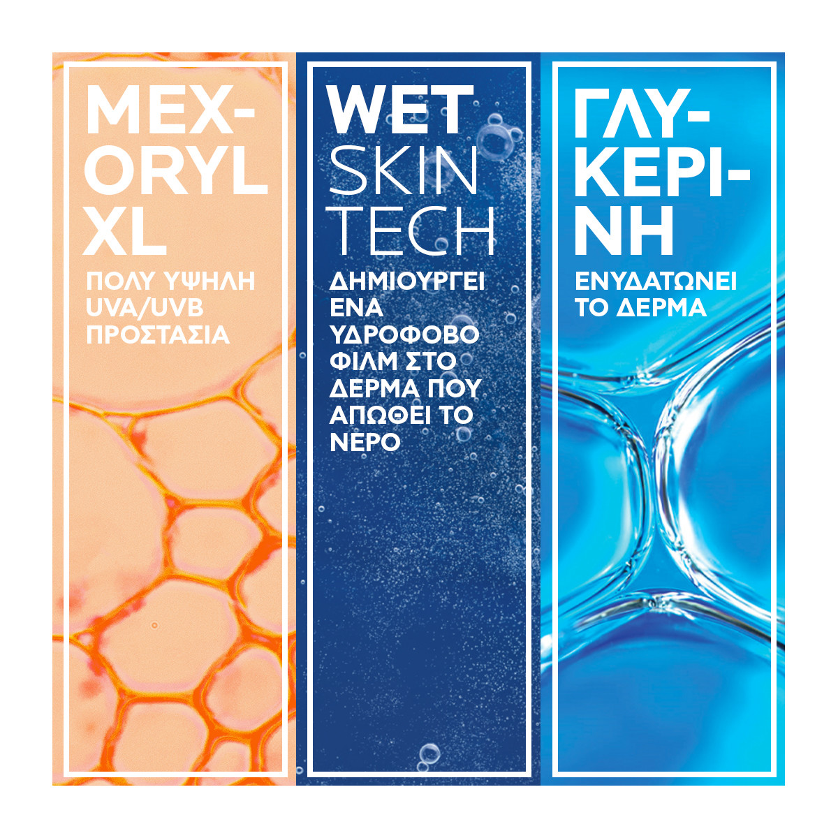 Αντηλιακό πολύ υψηλής προστασίας για παιδιά ακόμα και όταν εφαρμόζεται σε βρεγμένο δέρμα. Με τεχνολογία Wet Skin.