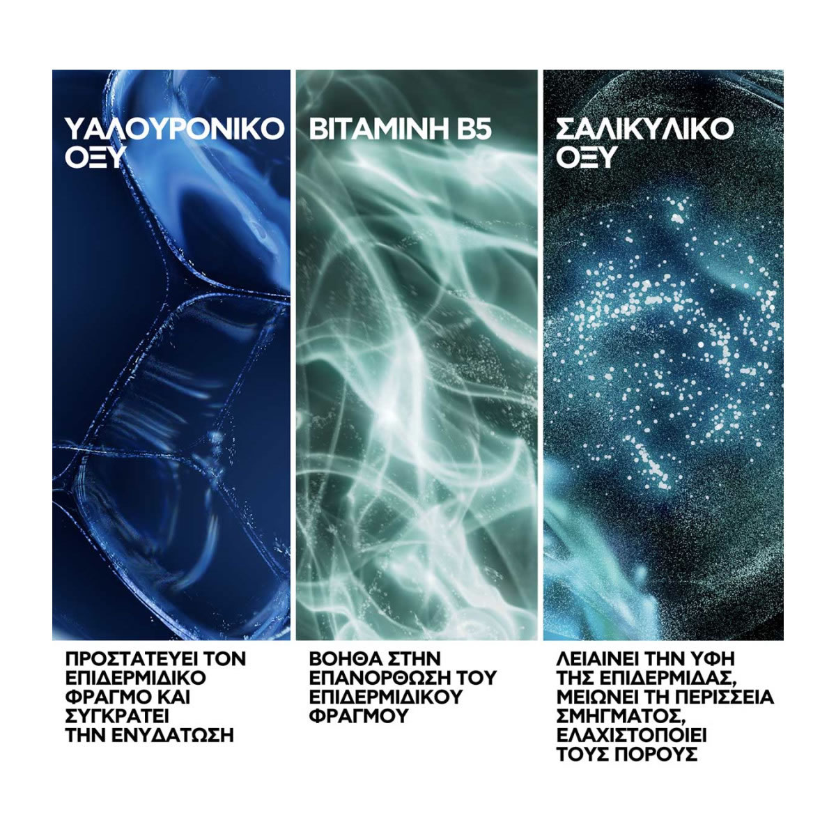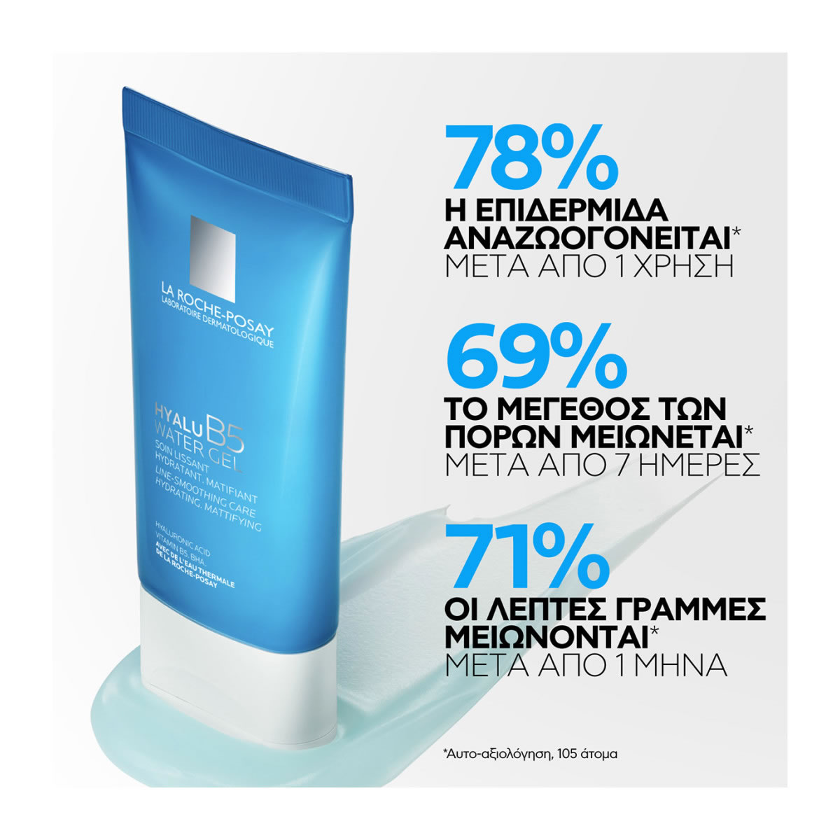 Κρέμα προσώπου διπλής δράσης με gel υφή που μετατρέπεται σε νερό, κατά των λεπτών γραμμών και της λιπαρότητας. Συνδυάζει Υαλουρονικό οξύ, Βιταμίνη Β5 και BHA.