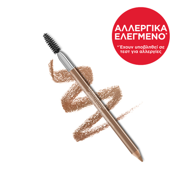 ΧΡΗΣΗ: Συμβουλές εφαρμογής από τη μακιγιέζ Carine LARCHET, η οποία συμμετέχει στα σεμινάρια διορθωτικού μακιγιάζ στο Ιαματικό Κέντρο της La Roche-Posay. 1. Ζεστάνετε τη μύτη του μολυβιού στα χέρια σας αφού το έχετε πρώτα ξύσει. 2. Ενώστε την αρχή, την κορυφή και το τέλος του φρυδιού ακολουθώντας τη φυσική φορά των τριχών. Δώστε ένταση στην αρχή του φρυδιού. 3. Χτενίστε τα φρύδια για φυσικό αποτέλεσμα.