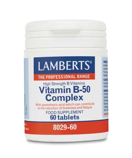 Η Βιταμίνη Β-50 Complex της Lamberts, αποτελεί ένα υψηλής περιεκτικότητας και ολοκληρωμένο σύμπλεγμα της ομάδας των Βιταμινών Β.