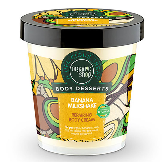 NATURA SIBERICA Organic Shop Body Desserts Banana Milkshake, Επανορθωτική κρέμα σώματος, Μπανάνα Milkshake, 450ml