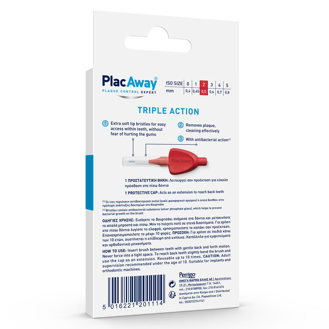 PLAC AWAY Μεσοδόντιο Βουρτσάκι Triple Action 0.5mm, ISO 2, Κόκκινο, 6 Τεμάχια