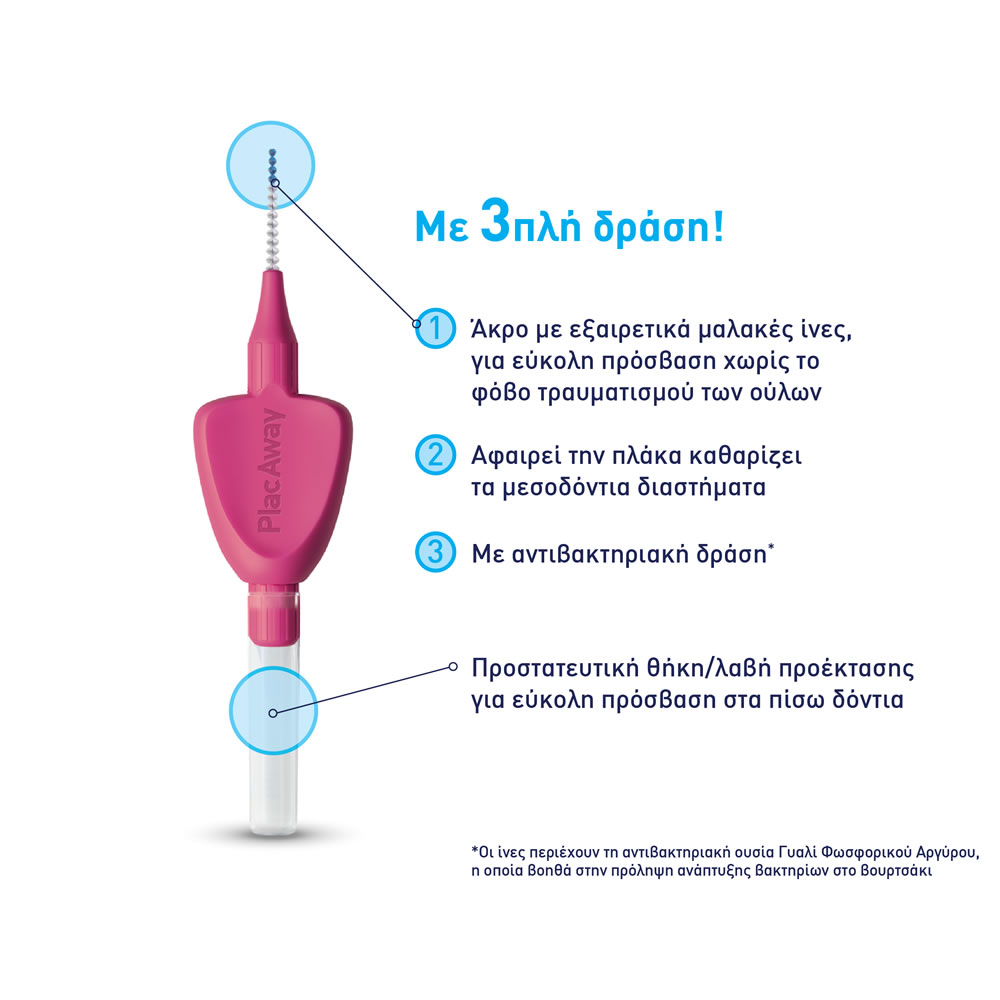 NEΑ Plac Away Μεσοδόντια Βουρτσάκια Triple Action με Τριπλή Δράση για αποτελεσματικό καθαρισμό των μεσοδόντιων διαστημάτων.