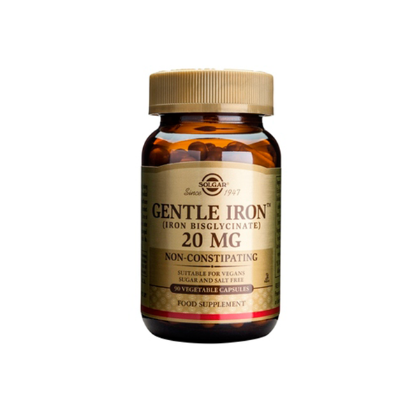O σίδηρος είναι ένα από τα σημαντικότερα συστατικά του αίματος. Αναστέλλει τη σιδηροπενική αναιμία και ως συστατικό της αιμοσφαιρίνης μεταφέρει οξυγόνο σε ολόκληρο τον οργανισμό. Ο δισγλυκινικός σίδηρος απορροφάται εύκολα, έχει υψηλή βιοδιαθεσιμότητα, δεν προκαλεί δυσκοιλιότητα ή στομαχικές ενοχλήσεις (φουσκώματα) και δεν απαιτεί βιταμίνη C για να απορροφηθεί. Το Gentle Iron 20mg 90caps της Solgar αποτελεί το σύμπλοκο σιδήρου κατάλληλο για τις ανάγκες του οργανισμού.