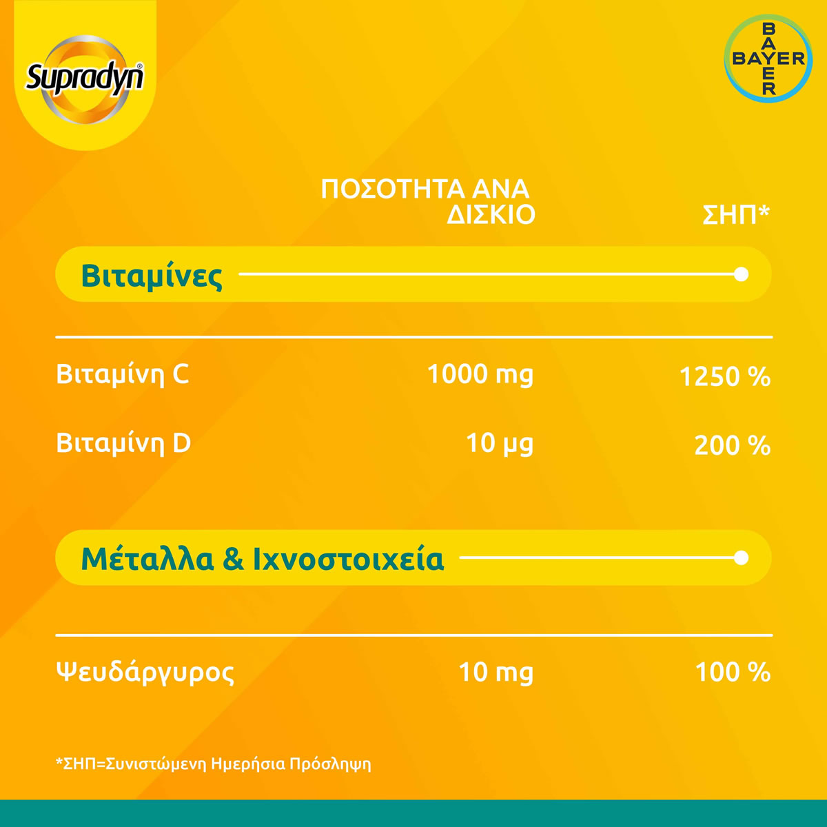 Supradyn Immunity 30 αναβράζοντα δισκία Αριθμός Γνωστοποίησης ΕΟΦ: 77403/12.7.2022. Το προϊόν δεν υπόκειται σε διαδικασία αδειοδότησης.