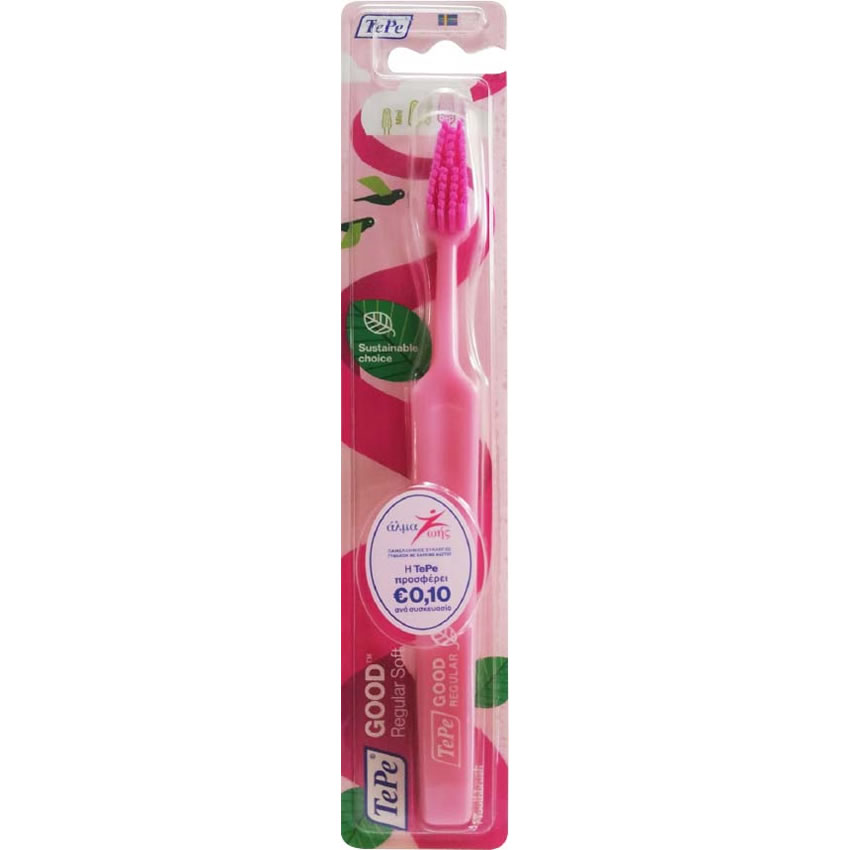 Η οδοντόβουρτσα TePe GOOD είναι διαθέσιμη σε Regular (soft), Compact (soft) και Mini με πολύ μαλακές ίνες (xsoft).