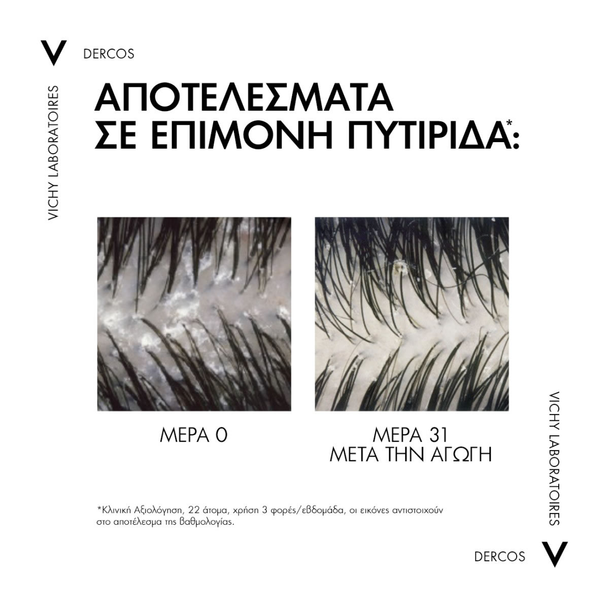 Άμεση και συνολική εξυγίανση του τριχωτού: εξάλειψη πιτυρίδας, ρύθμιση απολέπισης. Κλινικά Αποδεδειγμένη αποτελεσματικότητα: • 100% εξάλειψη της ορατής πιτυρίδας. • Καταπραΰνει το αίσθημα κνησμού. • Δράση κατά της επανεμφάνισης για 6 εβδομάδες. Η γνώμη των χρηστών: – Προσφέρει άμεση και ορατή αποτελεσματικότητα: 96% – Προλαμβάνει την επανεμφάνιση της πιτυρίδας: 92% – Καταπραΰνει το τριχωτό της κεφαλής: 97% – Δείχνει να είναι πιο αποτελεσματικό από τα μέχρι σήμερα γνωστά προϊόντα κατά της πιτυρίδας: 91% ΣΕ ΝΕΑ ΟΙΚΟΛΟΓΙΚΗ REFILL ΣΥΣΚΕΥΑΣΙΑ Με λιγότερο πλαστικό- λιγότερα απόβλητα κατά την παραγωγή και χαμηλότερο περιβαλλοντικό αποτύπωμα. Vichy, TSA 75000 93584 St Ouen Cedex Fr., consumercaregreece@loreal.com