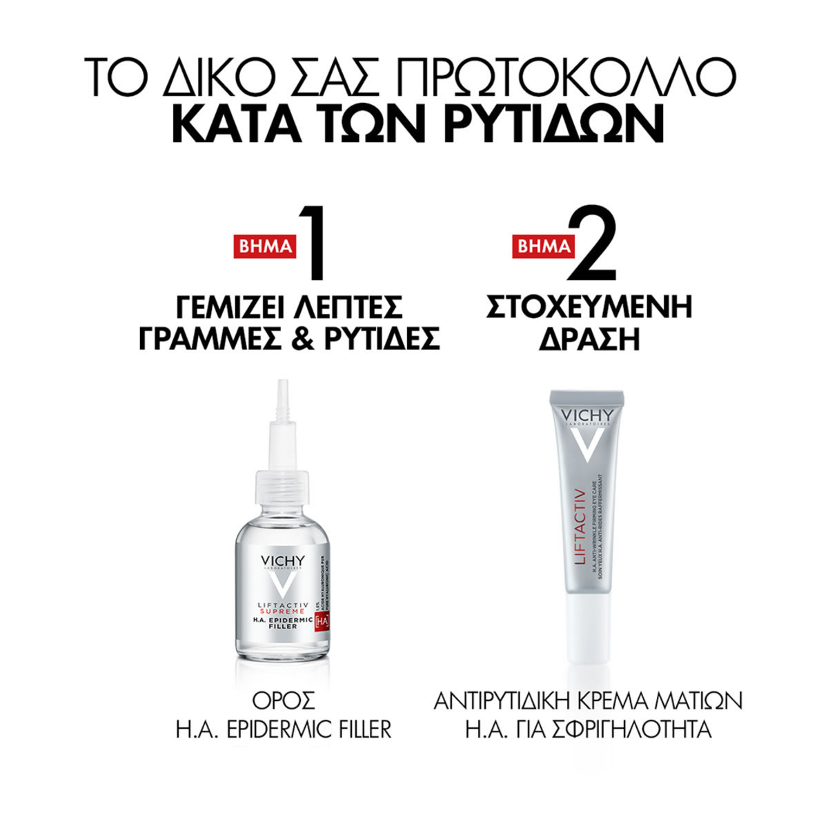 Αντιρυτιδική κρέμα ματιών με υαλουρονικό οξύ. Η Αντιρυτιδική & Συσφικτική κρέμα ματιών Liftactiv H.A. ανορθώνει ορατά τα βλέφαρα, απαλύνει τις λεπτές γραμμές και τις ρυτίδες, μειώνει το πρήξιμο κάτω από τα μάτια, και ελαχιστοποιεί τους μαύρους κύκλους, επαναφέρονας τη σφριγηλότητα.